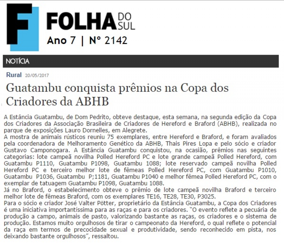 Genética aditiva excepcional de Hereford e Braford em pista. A Estância Guatambu, de Dom Pedrit...