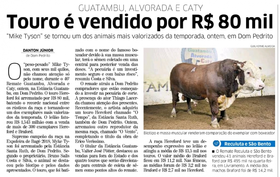 Touro é Vendido por R$ 80 mil